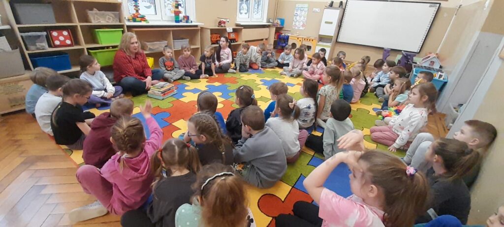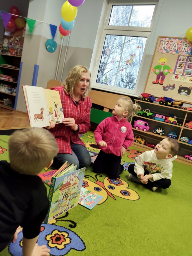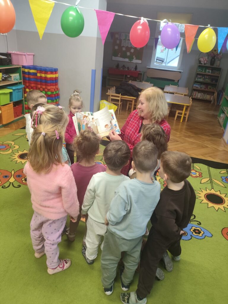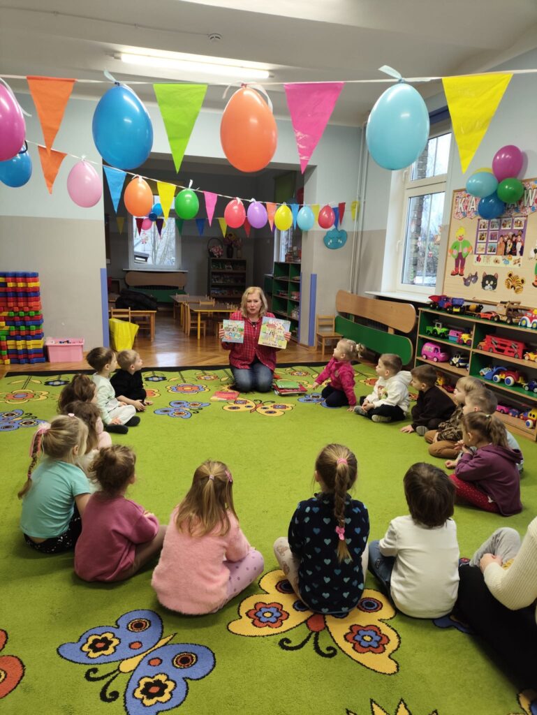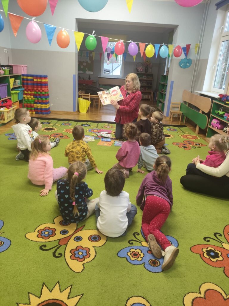Dziś nasze przedszkole odwiedziła Pani Ewa z Biblioteki- oddział dla dzieci ul. Bramkowa. Dzieci miały okazję obejrzeć ciekawe książki, które przyniosła pani bibliotekarka. Wspólnie mogliśmy przypomnieć sobie różne baśnie. Pani zaprosiła dzieci , aby odwiedziły bibliotekę z rodzicami i wypożyczyły książki.