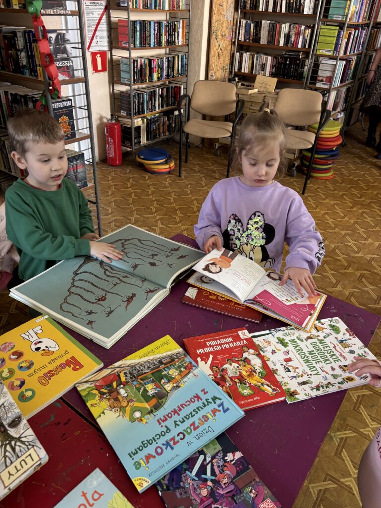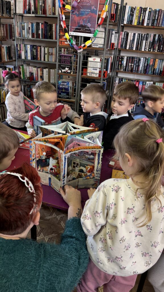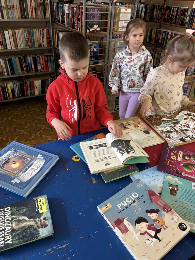 Dzisiaj grupa „Kubusie” wybrała się na wycieczkę do filii miejskiej na os. Łużyckim. Na miejscu były rozmowy o książkach i o tym, po co właściwie są biblioteki. Wspólne czytanie i tropienie „Tajemniczego pożeracza książek” oraz sprawdzanie, co się kryje na półkach.